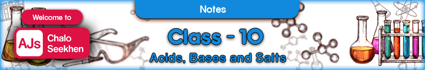 Welcome to our AJs Chalo Seekhen. This webpage is dedicated to Class 10 | Science | Chapter 2 - Acids, Bases and Salts. This chapter provides an insightful exploration of these crucial chemical substances. It introduces students to the fundamental concepts of acids and bases, their properties, and the reactions they undergo. The chapter also delves into the formation and characteristics of salts, a product of reactions between acids and bases. This comprehensive overview is designed to build a strong foundation in understanding these essential components of chemistry, making it a vital part of the curriculum for Class 10th students.