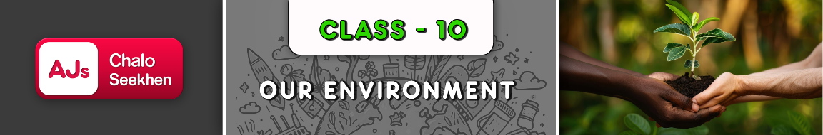 Welcome to AJs Chalo Seekhen. This webpage is dedicated to Class 10 | Science | Chapter 13 | Our Environment. In this chapter, introduces students explore ecosystems and the impact of human activities on the environment. It discusses the importance of natural resources, the need for sustainable development, and the role of various factors in maintaining ecological balance. The chapter also covers pollution, its types, sources, and effects on living organisms. Students learn about the significance of biodiversity, conservation efforts, and practices to reduce environmental degradation, highlighting the need for responsible stewardship of our planet. This chapter is key to understanding the delicate balance of our environment and our role in preserving it.
