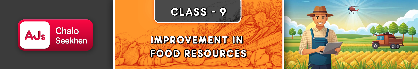 Welcome to AJs Chalo Seekhen. This webpage is dedicated to Class 9 | Science | Chapter - 12 | Improvement in Food Resources. In this chapter, students explore strategies for enhancing the quality and quantity of food production. This chapter delves into topics such as crop variety improvement, crop production management, and animal husbandry. Students will learn about modern agricultural techniques, sustainable practices, and the importance of nutrient management in crops and livestock. The chapter also addresses the role of biotechnology in developing high-yield and disease-resistant varieties. By understanding these concepts, students gain insights into the scientific methods used to meet the increasing food demands of a growing population while ensuring environmental sustainability.
