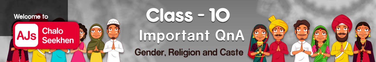 Welcome to our AJs Chalo Seekhen. This webpage is dedicated to Class 10 Civics Chapter 3 - Gender, Religion and Caste. Here, you will find a comprehensive collection of important questions and answers that cover the key concepts and topics discussed in this chapter. Whether you're a student looking for exam preparation or a teacher seeking additional resources, our webpage provides a valuable resource to enhance your understanding of the fundamental unit of life, including cell structure, functions, and various types of cells. Dive into our carefully curated questions and answers to strengthen your knowledge and excel in your science studies.