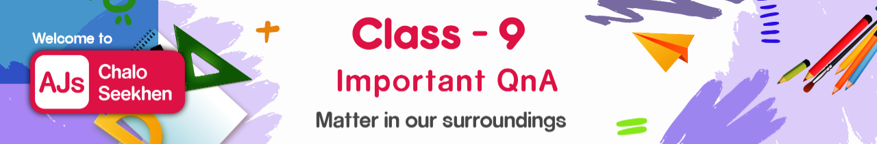 Welcome to our AJs Chalo Seekhen. This webpage is dedicated to Class 9 Science Chapter 1 - Matter in our surroundings. Here, you will find a comprehensive collection of important questions and answers that cover the key concepts and topics discussed in this chapter. Whether you're a student looking for exam preparation or a teacher seeking additional resources, our webpage provides a valuable resource to enhance your understanding of the fundamental unit of life, including cell structure, functions, and various types of cells. Dive into our carefully curated questions and answers to strengthen your knowledge and excel in your science studies.
