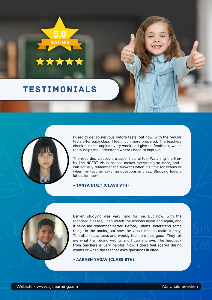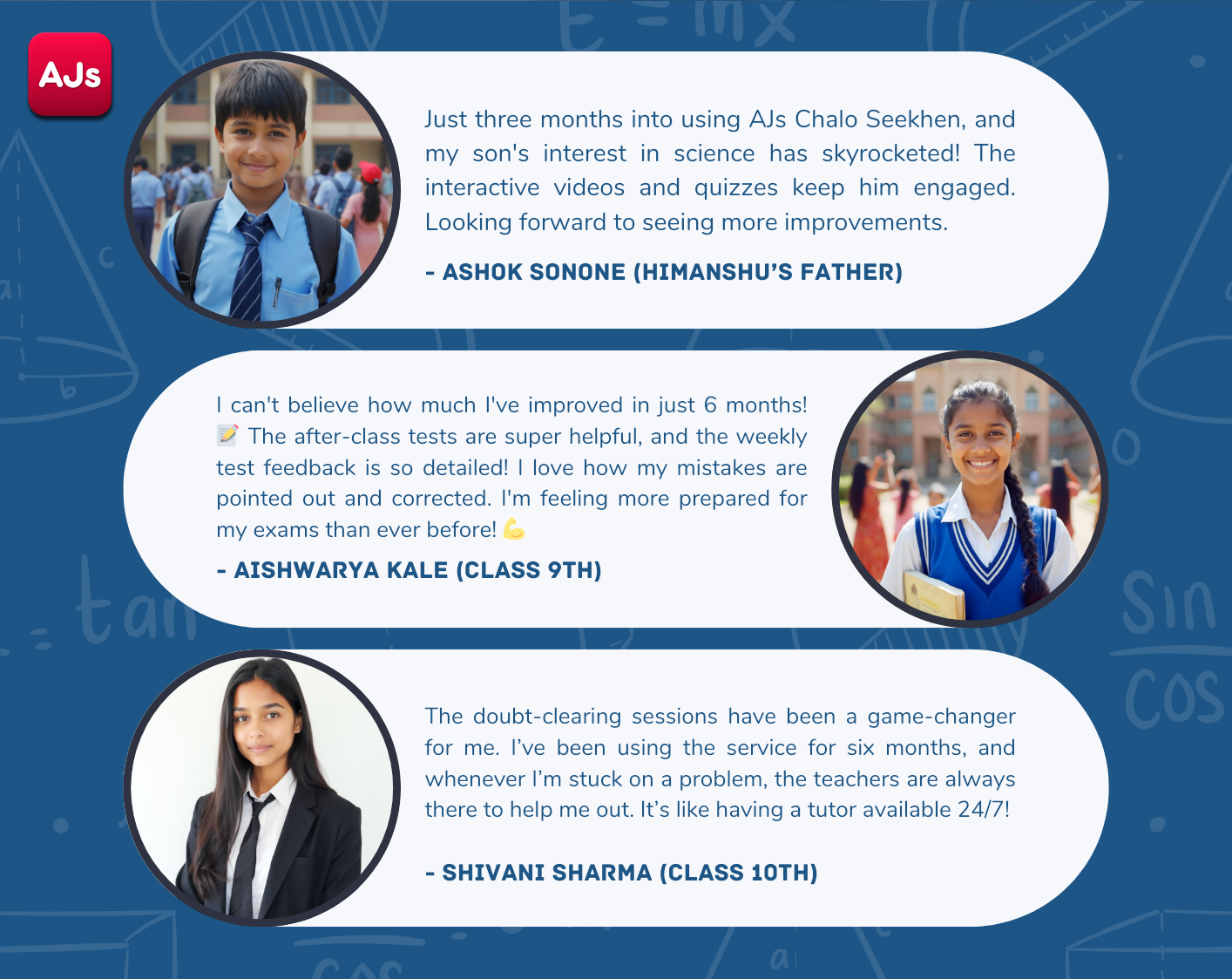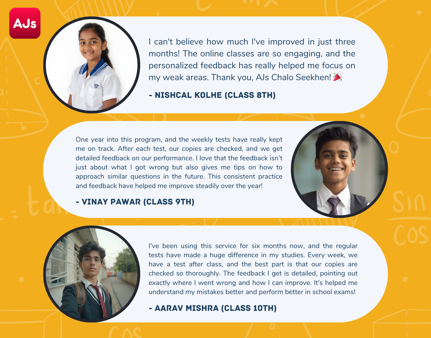 Thanks to this program, I’ve gone from struggling in exams to being fully prepared for the challenges ahead. Now, I’m working hard not only on my studies but also as I prepare for the CAT Entrance Exam, and I know the lessons I’ve learned from AJs Chalo Seekhen will continue to support me. I can confidently say this course was a life-changing decision for me, and I highly recommend it to anyone looking to grow academically and personally.